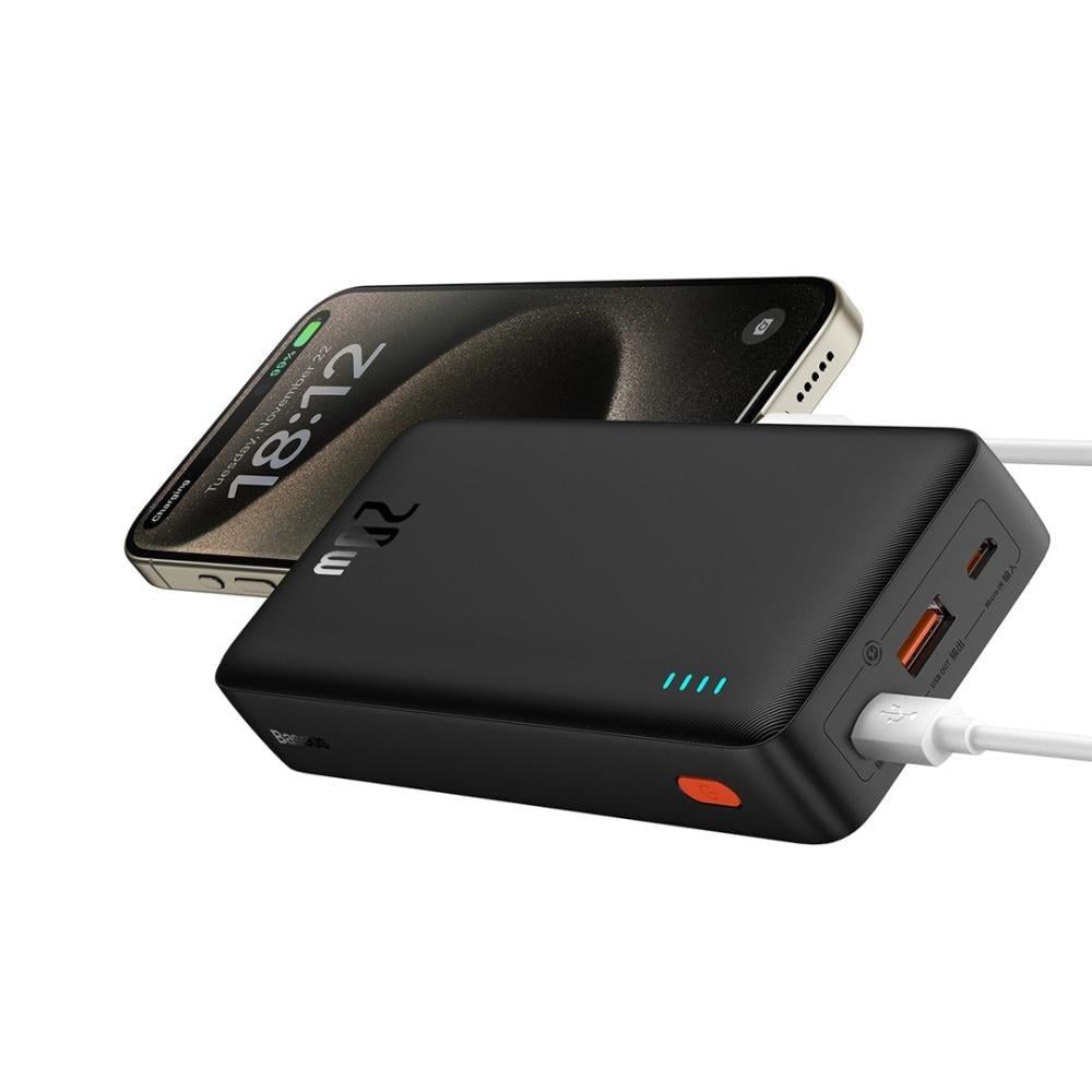 مع Baseus Airpow Powerbank، لن تضطر أبدًا إلى البحث عن مقبس أثناء التنقل مرة أخرى. مع وجود بنك الطاقة معك، يمكنك شحن هاتفك بالكامل حتى 3 مرات. تبلغ سعتها 20,000 مللي أمبير. يقوم بنك الطاقة أيضًا بشحن بطارية جهازين في نفس الوقت بسرعة. يحتوي الشاحن على منفذ USB-C ومنفذ USB-A. يتمتع بنك الطاقة بقدرة شحن تصل إلى 20 واط ويدعم تقنيات توصيل الطاقة والشحن السريع. على سبيل المثال، يتم شحن أجهزة مثل iPhone 13 بنسبة 50% خلال 30 دقيقة. وأخيرًا، من السهل اصطحابها معك في حقيبتك أثناء التنقل.