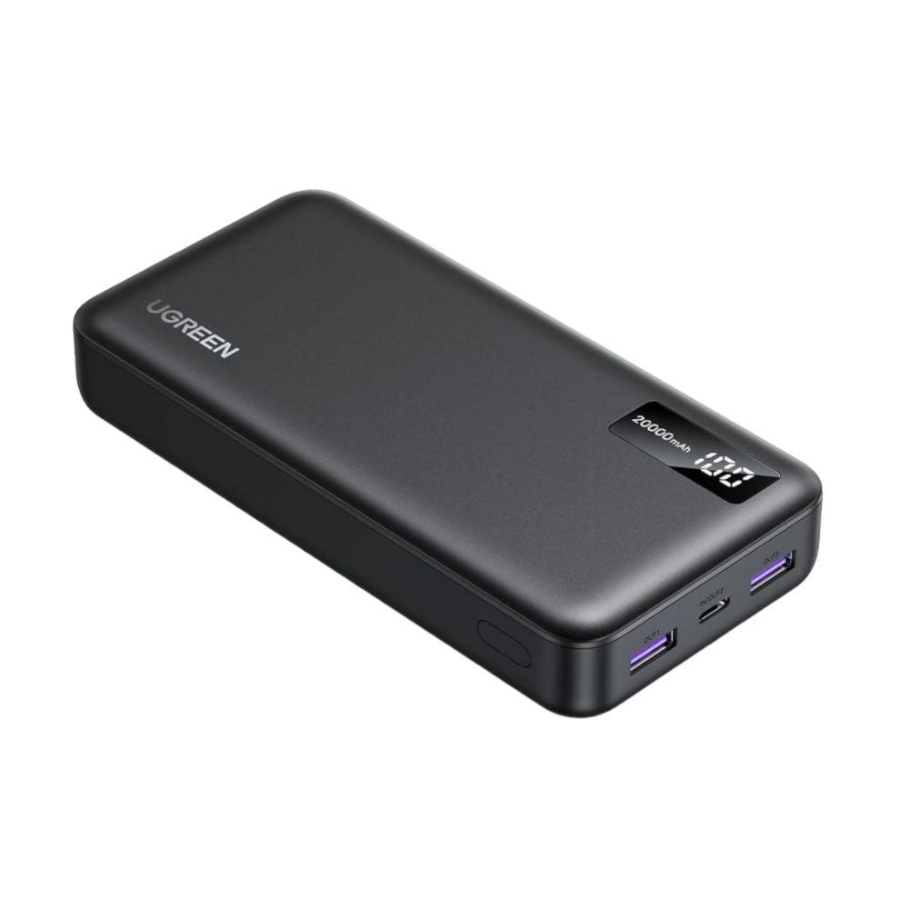 - شاحن متنقل بثلاثة منافذ للشحن السريع (منفذين USB-A ومنفذ USB-C تكفي لشحن ثلاثة أجهزة في وقت واحد مع توزيع ذكي للطاقة (يصل إلى 20 واط لأجهزة الايفون و22.5 واط لأجهزة الاندرويد).