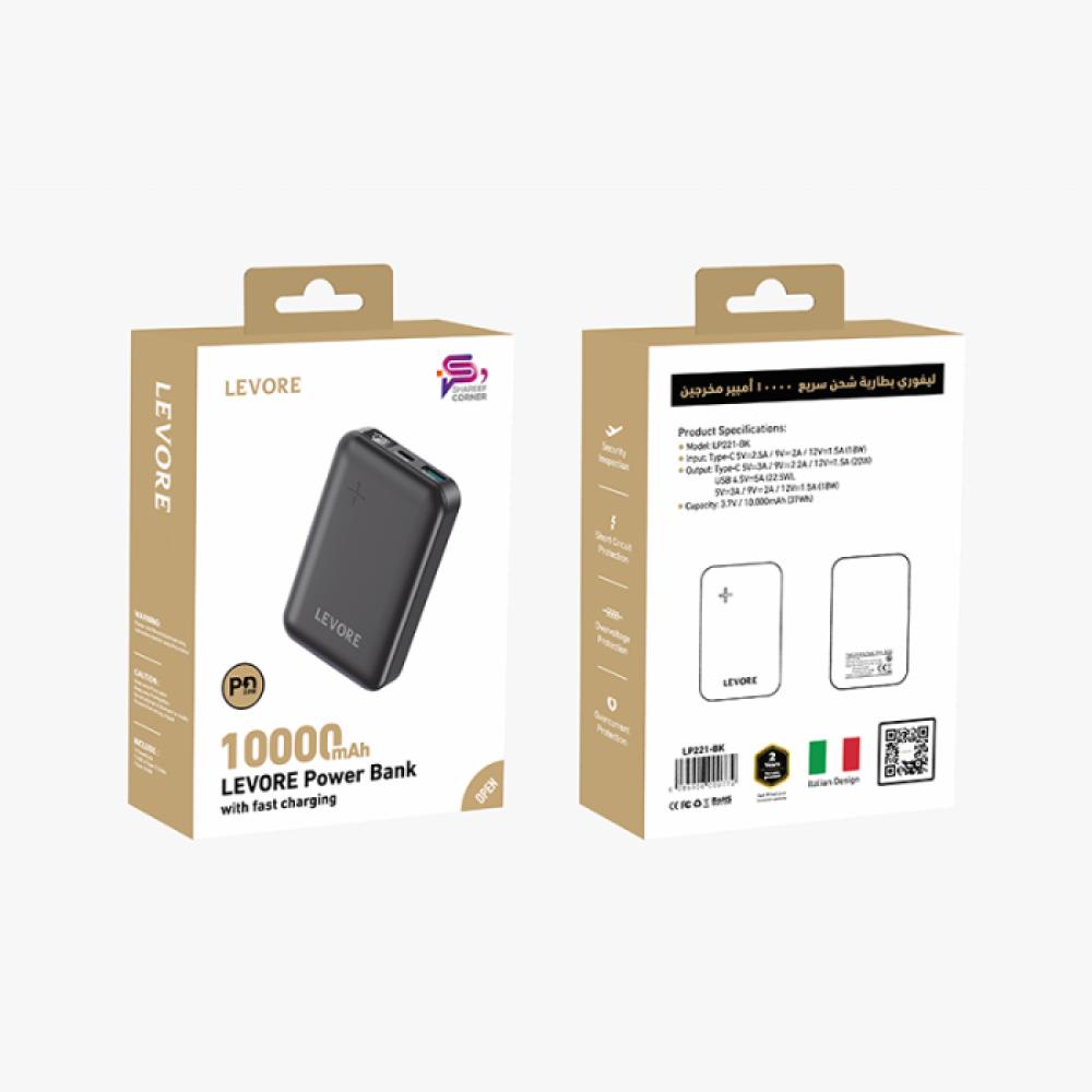 Specifications: Input: Type-C, 18 watts Output 1: USB-A 18W + Huawei Super Fast Charge 22.5W Output 2: Type-C PD 20W Battery capacity: 10,000 mAh Material: Plastic (matte UV coated)